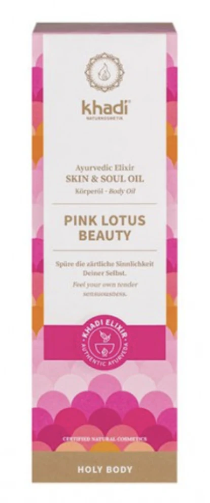 Elixir Ayurveda Loto Rosa de Khadi, el aceite armonizador del alma tiene un efecto equilibrante, proporciona hidratación concentrada y deja la piel con una sensación sedosa y suave.