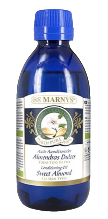 El Aceite de Almendras Dulces de Marnys es 100% natural y vegetal y se obtiene de las semillas maduras de Prunus amygdalus dulcis. Es adecuado para todo tipo de pieles, en especial la piel seca, sensible e irritable, producida en épocas invernales. Proporciona elasticidad y suavidad a la piel.