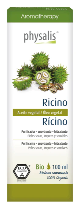 Physalis aceite de ricino bio es un aceite naranja claro viscoso que se extrae de las semillas de ricino, una planta arborescente originaria de África que crece actualmente en todas las regiones de la tierra. Muy rico (hasta el 90%) en glicéridos del ácido ricinoleico (ω9).