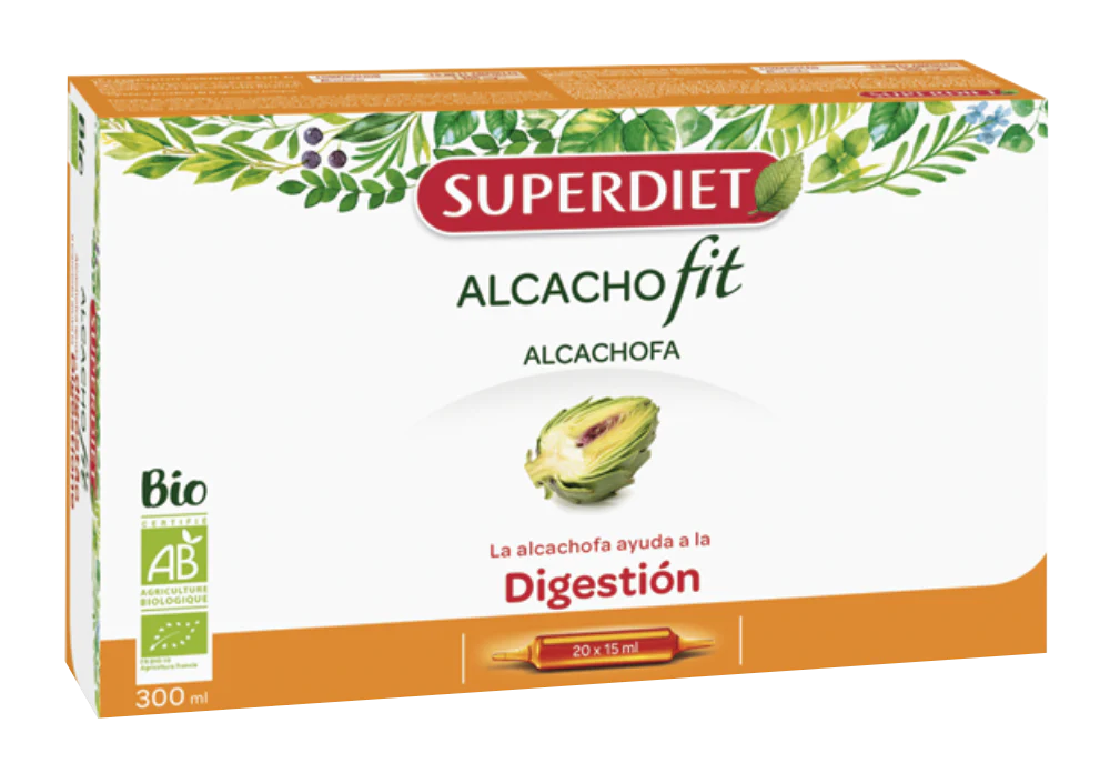 Extracto acuoso de alcachofa* (hoja) 300 mg, extracto seco de alcachofa* (hoja) 900 mg. * Ingrediente procedente de la agricultura biológica.