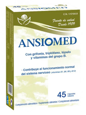 Ansiomed es una fórmula que contiene triptófano, extracto de griffonia, lúpulo y vitaminas del grupo B. El triptófano es un aminoácido esencial que influye en la cantidad de serotonina, precursora de la hormona melatonina, crucial para el ciclo del sueño.