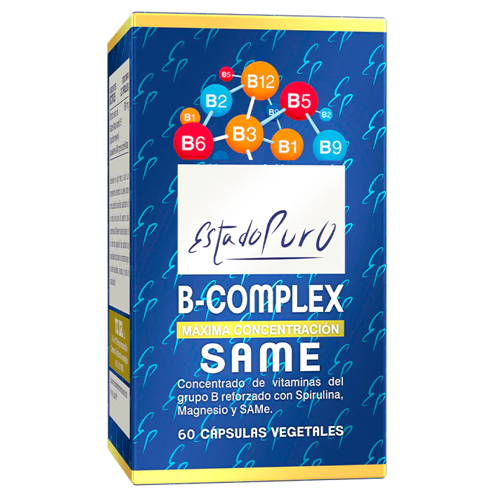 - B-Complex con SAMe aporta una alta concentración y estandarización de todas las vitaminas del grupo B.