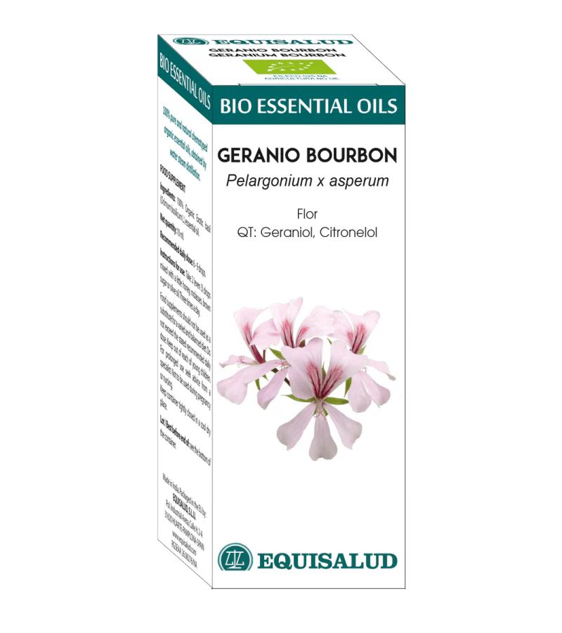 - 100% aceite esencial de flor geranio bourbon (Pelargonium × asperum Ehrhart ex Willdenow) ecológico.