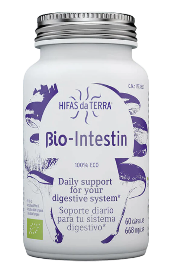 Bio Intestin es un superfood (superalimento) ecológico en cápsulas pensado para cuidar tu microbiota intestinal y favorecer tu bienestar digestivo. Este suplemento contiene las propiedades del polvo de Melena de león, Shiitake, Seta de ostra y Seta de cardo. Estos se hongos medicinales caracterizan por su alto contenido en fibra y su actividad prebiótica. Este complemento orientado a la prevención ayuda a mantener en equilibrio el sistema digestivo.