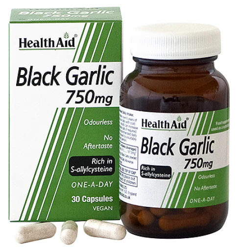El ajo es conocido por su actividad antioxidante potente y juega un papel vital para la salud y el bienestar general. El ajo negro tiene el doble de los nutrientes que el ajo blanco normal, rico en antioxidantes y sabor dulce, sin dejar sabor u olor desagradable asociado comúnmente con el ajo. Una sustancia llamada S-allylcysteine se encontró que sólo está en el ajo negro y demuestra que es más potente y beneficioso para el cuerpo, ayudando a mantener un corazón sano, siendo un apoyo nutricional para la hipertensión arterial y la mala circulación.