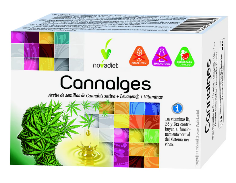 Aceite de semillas de Cannabis sativa var Finola de Cultivo Ecológico de primera presión en frío (1.000 mg, titulado al 19% en Omega-3), Levagen® [palmitoiletanolami- da (PEA), 300 mg], Antiaglomerante (fosfato cálcico dibásico), Emulgentes (lecitina de girasol, cera de abejas), Vitaminas B1 (mononitrato de tiamina, 2,2 mg, 200% VRN*), B6 (clorhidrato de piridoxina, 2,8 mg, 200% VRN*), B12 (cianocobalamina, 5 μg, 200% VRN*). Cubierta: Gelatina, Glicerina, Agua y Colorantes (óxido de hierro amarillo, clorofilina cúprica de sodio).