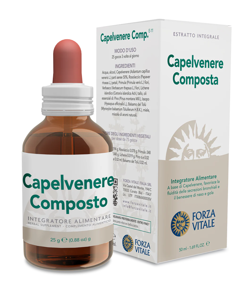 Agua, Alcohol, Culantrillo (Adiantum capillus veneris) partes aéreas 50%, Amapola (Papaver rhoeas) petalos, Prímula (Prímula veris) flores, Gordolobo (Verbascum thapsus) flores, Liquen islándico (Cetraria islandica) talo, aceites esenciales de: Pino (Pinus montana), Hisopo (Hyssopus officinalis), Bálsamo de Tolú (Myroxylon balsamum), miel, mezcla de aromas naturales.