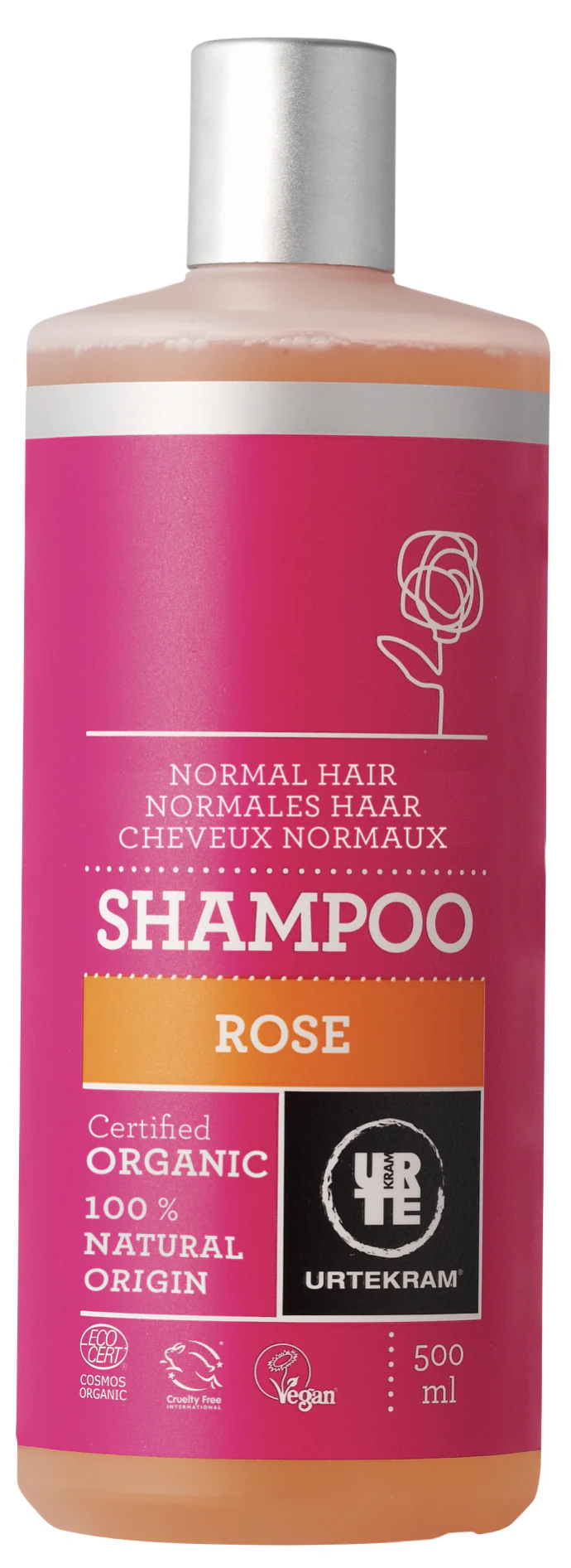 El Champú de Rosa de Urtekram es adecuado para la limpieza del cabello normal. Hidrata y nutre el cabello de una manera fácil con aloe vera y glicerina vegetal. Su fragancia a rosas revitaliza los sentidos.