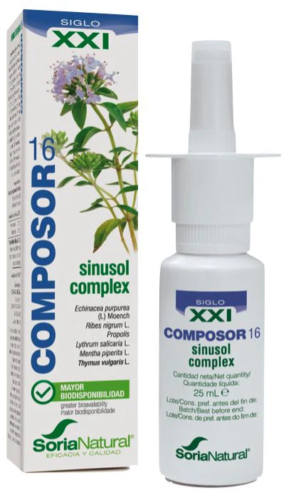 Composor 16 Sinusol Complex XXI es un nebulizador nasal constituido por una mezcla de extractos de plantas medicinales en una solución que le otorga mayor biodisponibilidad.
