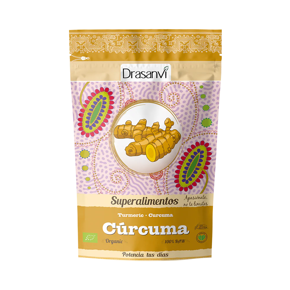 - 100% cúrcuma en polvo procedente de agricultura ecológica.
