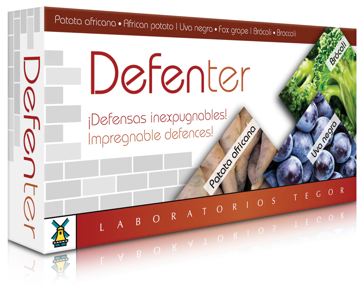 Defenter de Tegor es una combinación de patata africana reforzada con uva negra y brócoli que fortalece el organismo a nivel general y aumenta las defensas.