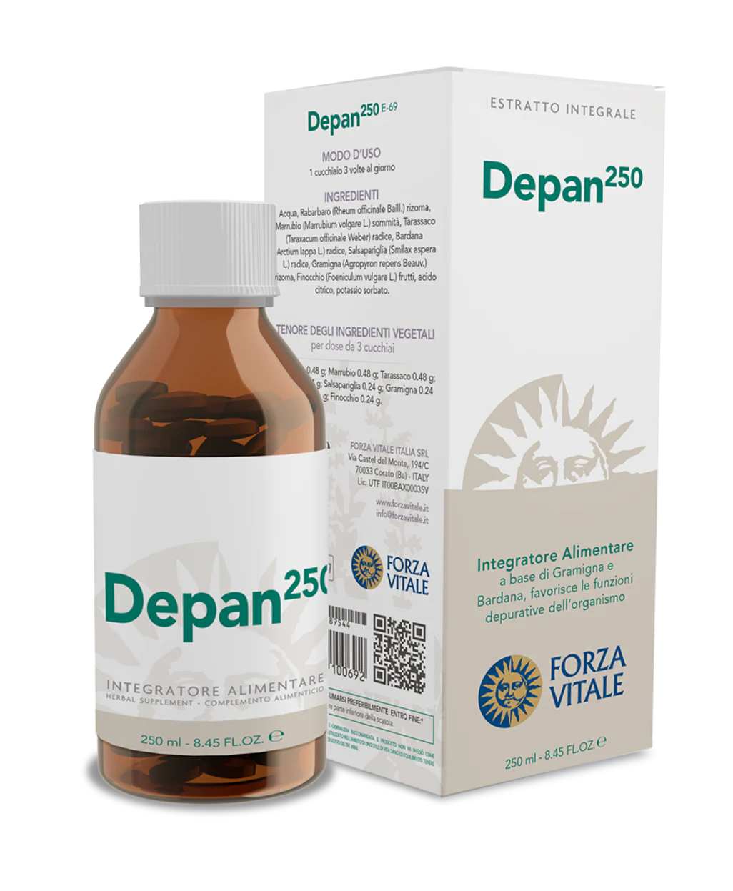 Agua, Ruibarbo (Rheum officinale) raíz, Marrubio (Marrubium vulgare) sumidades, Diente de león (Taraxacum officinale) raíz, Bardana (Arctium lappa) raíz, Zarzaparrilla (Smilax aspera) raíz, Gramínea (Agropyron repens) raíz, Hinojo (Foeniculum vulgare) frutos, ácido cítrico, potasio sorbato.