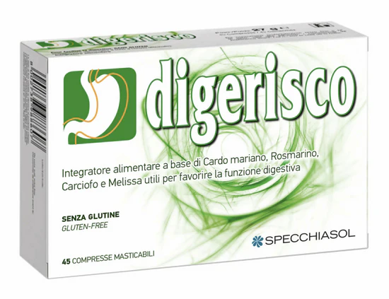 Digerisco son comprimidos masticables para favorecer la digestión a base de hierbas tradicionales y sal de magnesio para favorecer la digestión y el funcionamiento hepato-biliar.