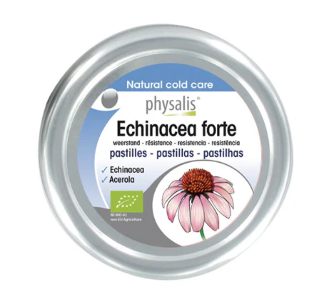Gelificante: goma arábiga, azúcar, jarabe de glucosa, jugo de echinacea purpúrea (partes aéreas floridas)(3%), extracto de acerola* (2%), extracto de raíces de echinacea de hojas estrechas(1%), extracto de raíces de echinacea purpúrea(1%), aroma natural, desmoldeador: cera de carnauba. *cultivo ecológico.