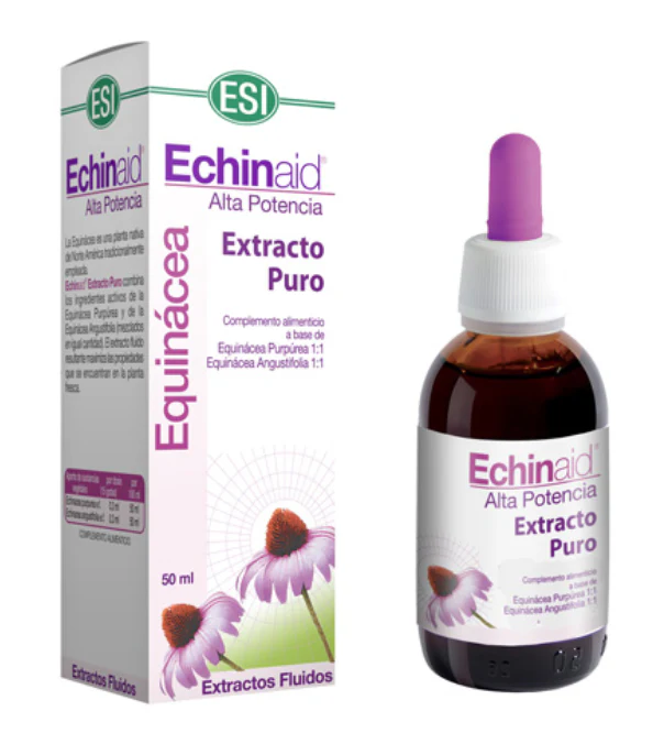 El resultado de este extracto fluido potencia las propiedades benéficas que se encuentran de forma natural en la planta fresca. Una dosis de 15 gotas contiene el equivalente a 600 mg. de la planta fresca. Echinaid en extracto líquido con alcohol reune en una única solución las propiedades de la Equinácea púrpurea y angustifolia. El producto está indicado como inmunoestimulante y como preventivo de las dolencias o patologías invernales.