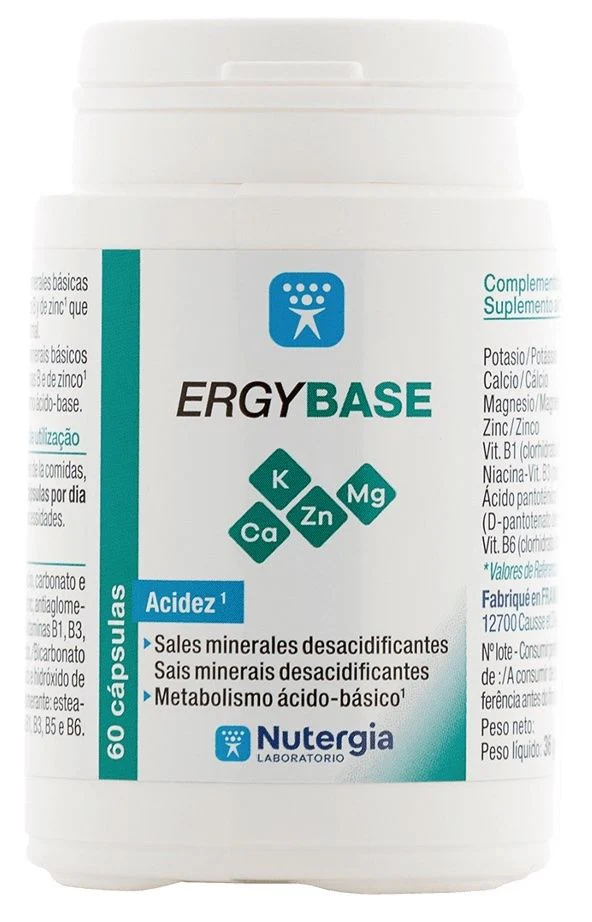 Nuestra alimentación actual dista mucho de la del pasado: carnes, alimentos salados o procesados con numerosos aditivos, tienen un efecto acidificante que obliga a movilizar demasiados recursos al organismo para mantener el pH sanguíneo, lo que provoca desequilibrios iónicos y minerales. Ergybase por su aporte en las sales básicas más eficaces (carbonato, bicarbonato y citrato) y en zinc (que ayuda al equilibrio ácido-básico), contribuye a neutralizar la acidosis y te ayuda a evitar y /o compensar las pérdidas minerales e iónicas, así como sus consecuencias.