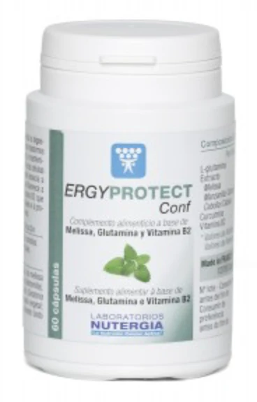 Ergyprotect Conf es una asociación de glutamina, único nutriente de los enterocitos, de plantas (melisa, manzanilla) y de antioxidantes (curcumina, quercitina) que permite inhibir la síntesis de algunos mediadores de la in amación. La fórmula también contiene vitamina B2, compuesto estructural y funcional de las mucosas, en particular las del intestino.