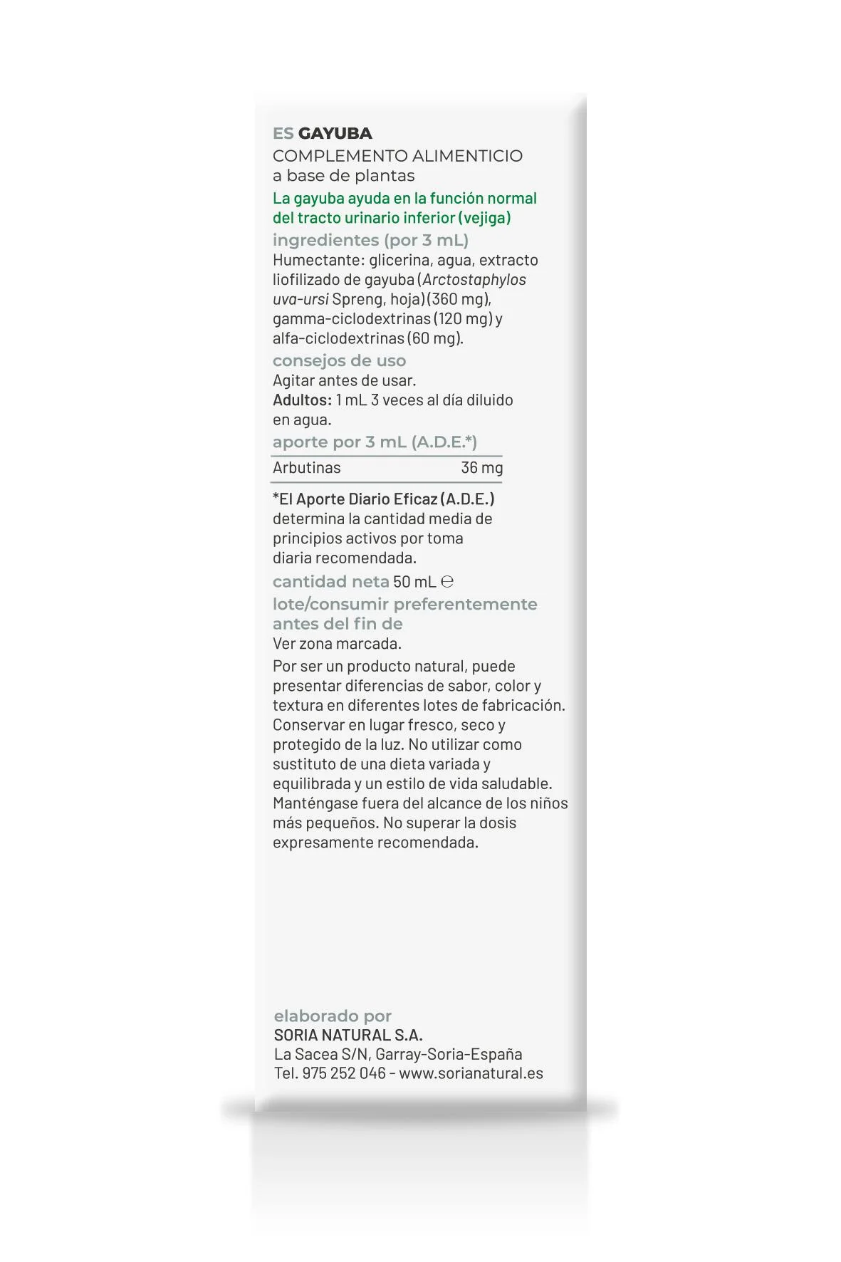 Humectante: glicerina, agua, extracto liofilizado de gayuba (Arctostaphylos uva-ursi Spreng, hoja) (360 mg), gamma-ciclodextrinas (120 mg) y alfa-ciclodextrinas (60 mg).