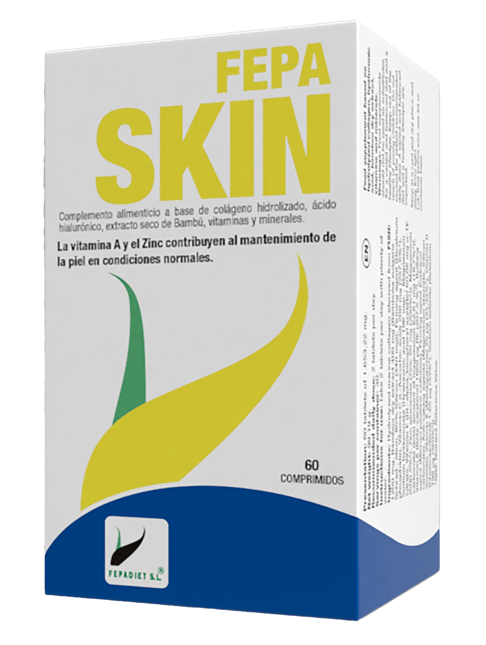 Fepa Skin es un producto que combina una equilibrada concentración de ácido hialurónico con colágeno, silicio, vitamina C y magnesio para proveer a la salud de la piel, ayudando en el manteniemiento del tejido conectivo, aumentando la elasticidad y resistencia de la misma.