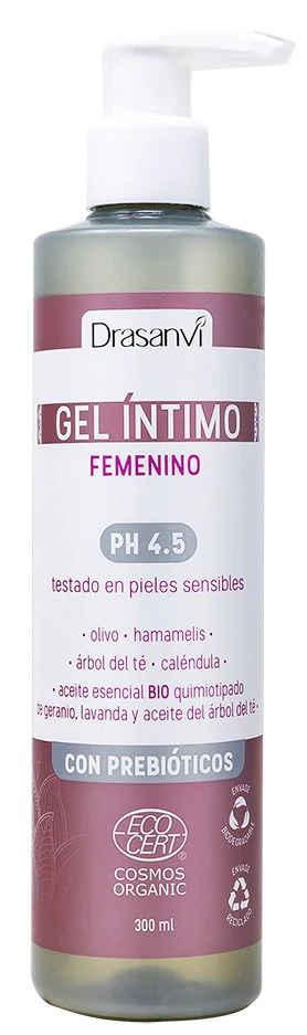 El gel íntimo de Drasanvi posee una formulación a base de Aloe Vera ecológico, extracto de Caléndula ecológico, extracto de Olivo ecológico, aceite esencial de Árbol del Té ecológico, aceite esencial de Lavanda ecológico, aceite esencial de Geranio ecológico y extracto de Hamamelis, que refresca y nutre intensamente la piel, aportándole un vigor extraordinario. Además, tiene funciones calmantes, antibacterianas y antifúngicas.