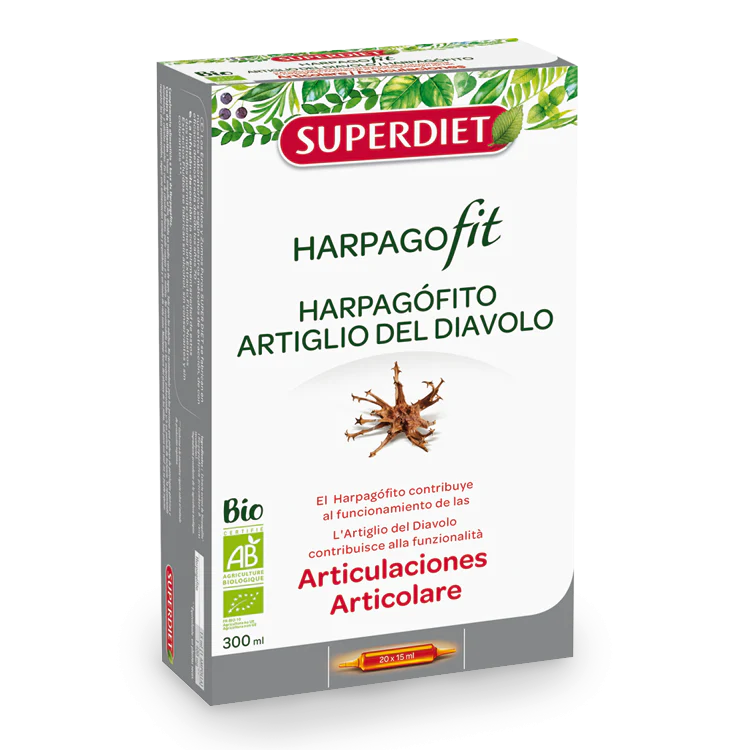 Extracto acuoso de harpagófito* (hoja). *Ingrediente procedente de la agricultura biológica.