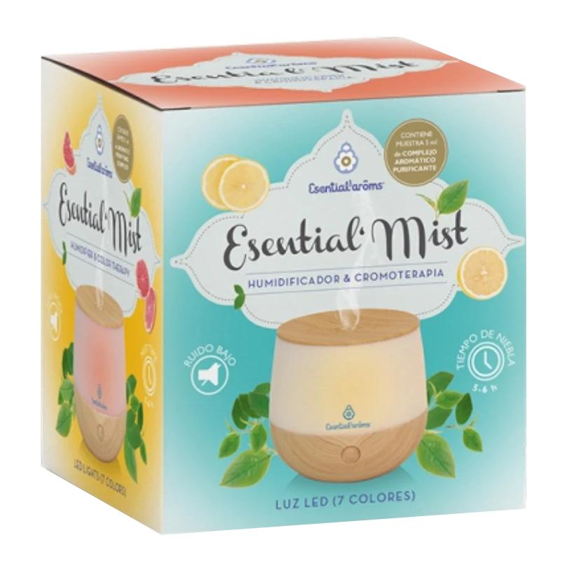 El aceite esencial conserva todas sus propiedades gracias al método de difusión de Esentiaal’Mist, que lo propulsa en forma de micropartículas, sin calentarlo.