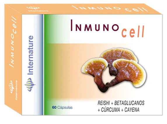 Inmunocell, es un suplemento natural que contiene extracto seco de cúrcuma, con cayena como transportador a través de las barreras biológicas, para su mayor absorción. Además de la cúrcuma, Inmunocell contiene extracto seco de reishi, (rico en glucanos), de reconocida acción antioxidante, inmunoestimulante y antiinflamatoria, junto con beta 1,3 glucanos, fibra soluble, de acción inmunoreguladora en el tramo intestinal, y antiinflamatoria.