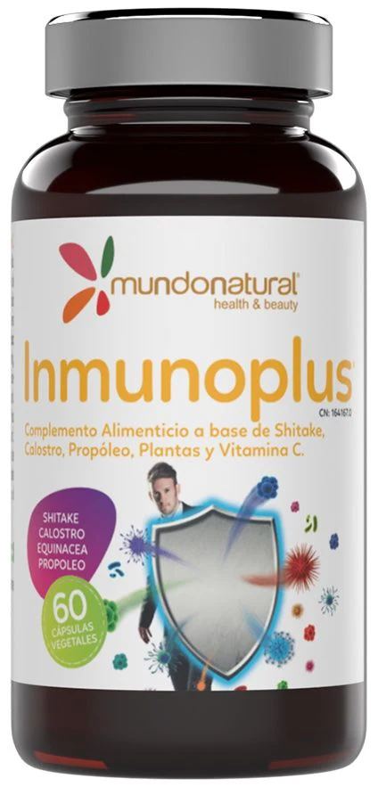 Inmunoplus de Mundo Natural es un complemento natural que actúa como potente inmunomodulador, estimulando la producción de inmunoglobulinas a nivel de mucosas, glóbulos blancos como elementos fundamentales de defensas, así como interferón para neutralizar las agresiones producidas por los virus y procesos alérgicos.