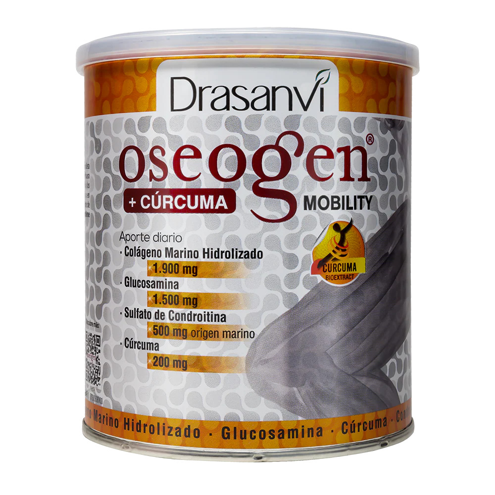 Oseogen Mobility es un complemento alimenticio único que incorpora en su composición nutrientes como el Colágeno Marino, la Condroitina, el Sulfato de Glucosamina y la Cúrcuma.