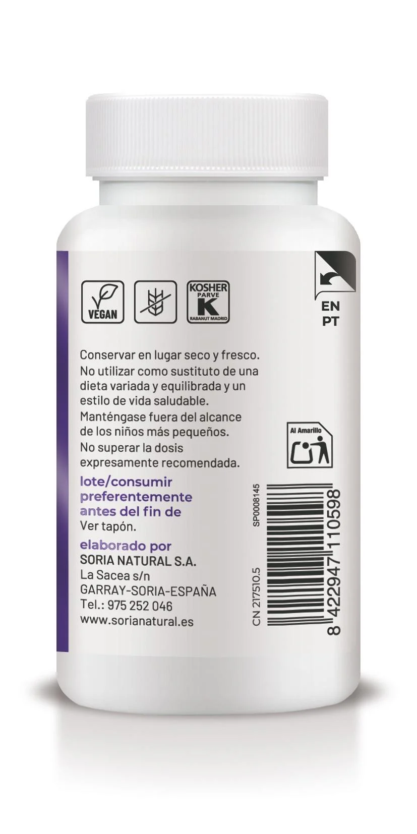 Producto vegano. Sin gluten. Certificado Kosher.
