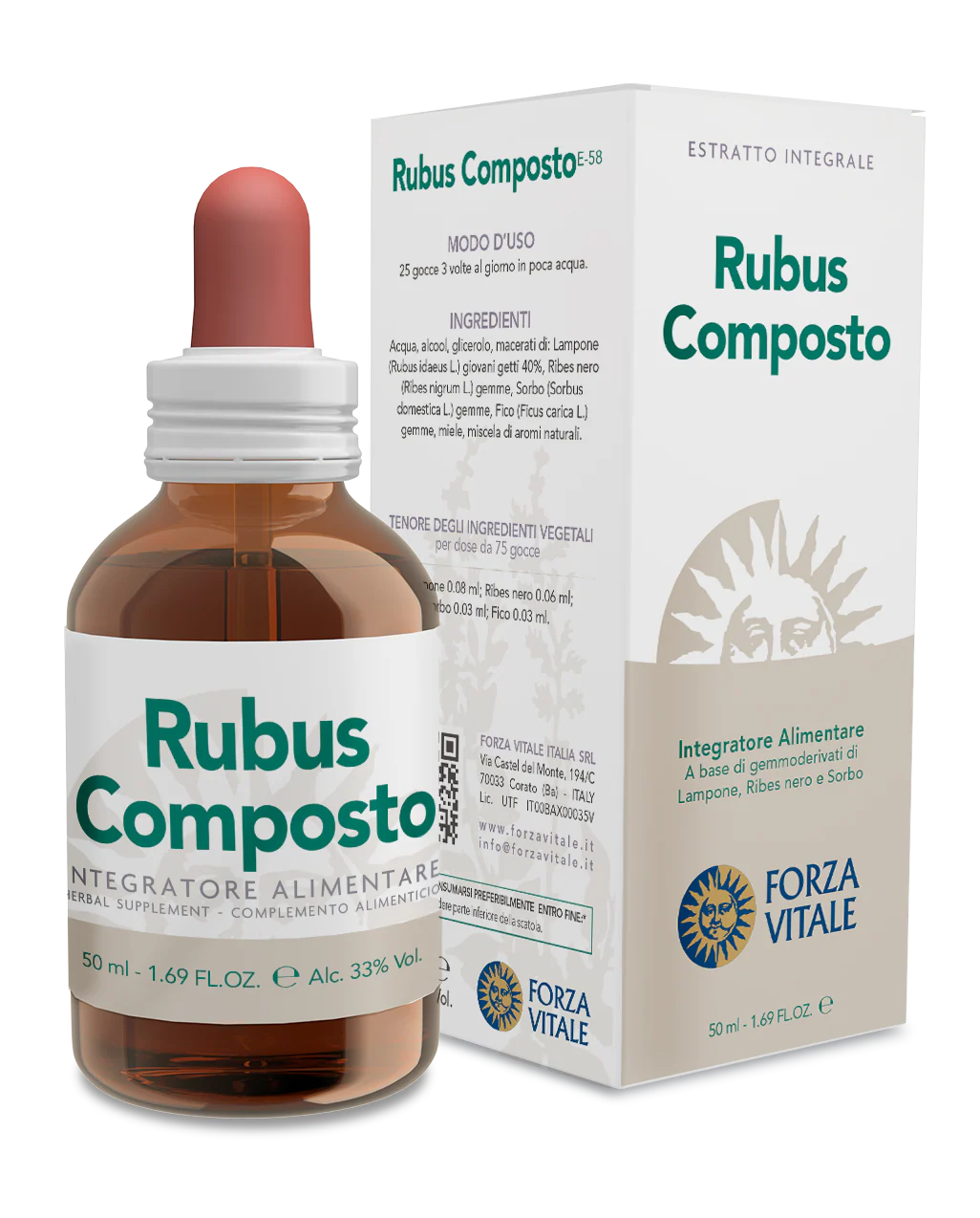 Agua, Alcohol, glicerol, macerados de: Frambueso (Rubus idaeus) jóvenes brotes 40%, Grosellero negro (Ribes nigrum) yemas, Serbal (Sorbus domestica) yemas, Higuera (Ficus carica) yemas, miel, mezcla de aromas naturales.
