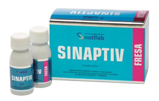 Agua, glicerina, fructosa, aceite de pescado desodorizado, lecitina de girasol, magnesio citrato, colina bitartrato, L-triptófano, aroma de fresa, Ribocare® UMP (sal disódica de Uridin-5-monofosfato), extracto seco de polygonum, goma xantana, carboximetilcelulosa sódica, sorbato potásico, benzoato de sodio, extracto seco de Ginkgo biloba, palmitato de L-ascorbilo, zinc citrato, rojo remolacha, sucralosa, extracto seco de pimentero negro, Quatrefolic® (ácido (6S)-5-metil-tetrahidrofolato, sal de glucosamina).