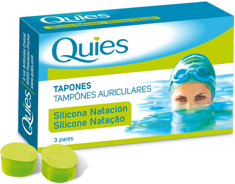 Con las protecciones auditivas de silicona Quies, ¡nade con total tranquilidad! Siendo muy moldeables, se adaptan perfectamente al conducto auditivo y se quedan bien colocadas. Totalmente impermeable, su textura de silicona impide que el agua entre en los oídos.