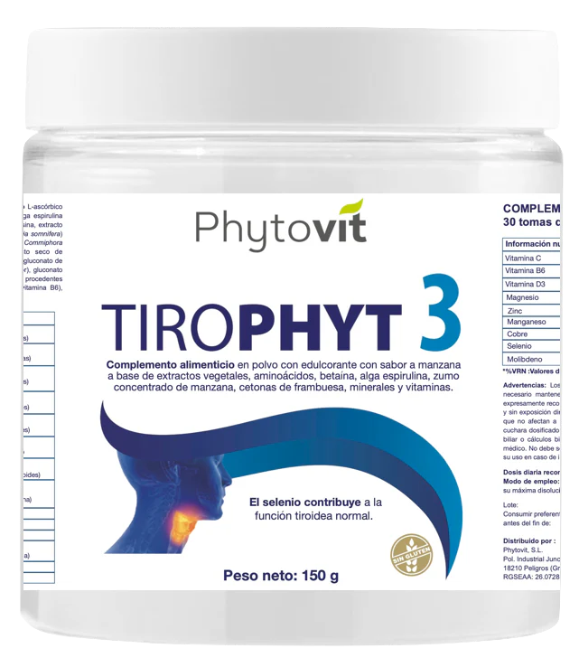 Tirophyt 3 constituye una nueva fórmula 100% natural que promueve la función óptima de la glándula tiroidea y glándulas suprarrenales íntimamente relacionadas, haciendo más eficaz la unión de las hormonas tiroideas (especialmente la T3 que es la que finalmente llega a los tejidos) a los receptores de todas las células del organismo.