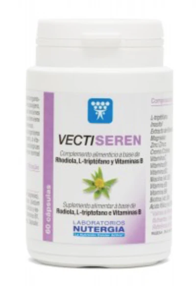 Rico en vitaminas C, B3 y B6 que contribuyen al equilibrio emocional, Vecti-Seren es fuente de vitamina B12 que participa en la estructura y en el funcionamiento del sistema nervioso. El cromo contribuye en el mantenimiento de la glicemia. Vecti-Seren aporta un complejo de aminoácidos, entre ellos L-triptófano. La serotonina, sintetizada a partir de este último, interviene en la regulación del sueño, del humor y del apetito.