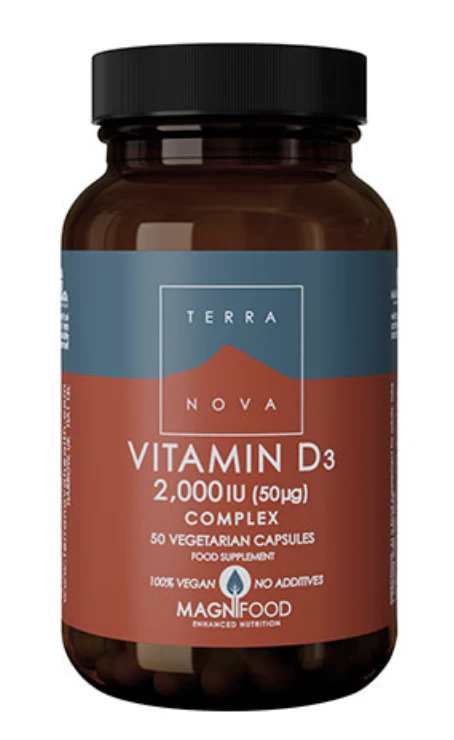- 50 mcg de vitamina D3 (colecalciferol, fuente vegana (liquen), 2.000 UI).